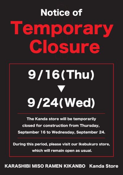 «前へ「【神田店】改修工事による一時閉店のお知らせ」